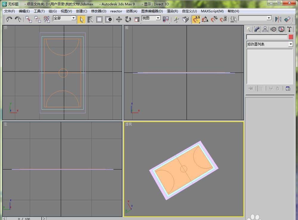 13、還有一些罰球線之類的都可以按照同樣的方法畫上去。這里小編就不一一的畫了。到這里就畫好了籃球場的底面了,接下來有時間我們就畫籃球架。