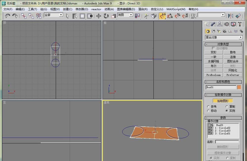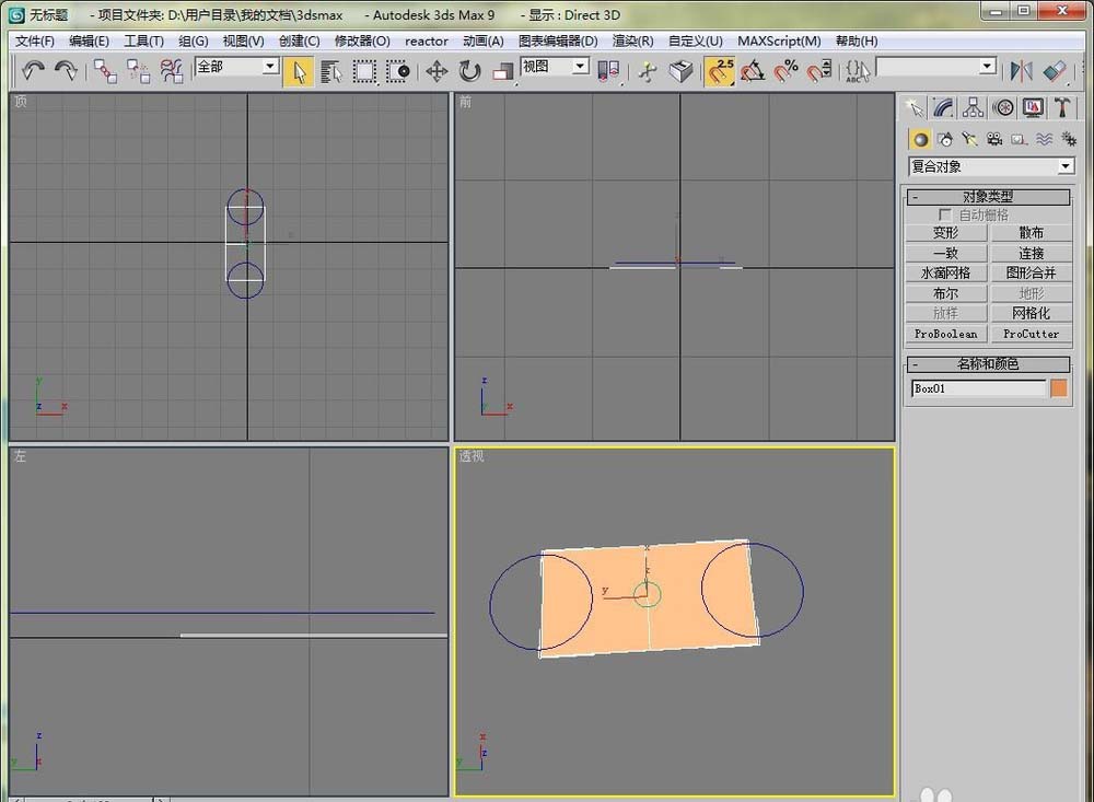 8、然后在創(chuàng)建面板下選擇符合對象,選中底下的長方體