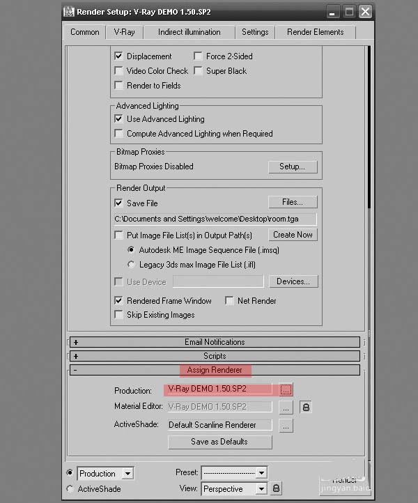 3、按f10,然后從"assign renderer"選項卡中選擇“Vray”。這將使“Vray”作為您的渲染器,并且還可以在材質編輯器中啟用Vray材質。