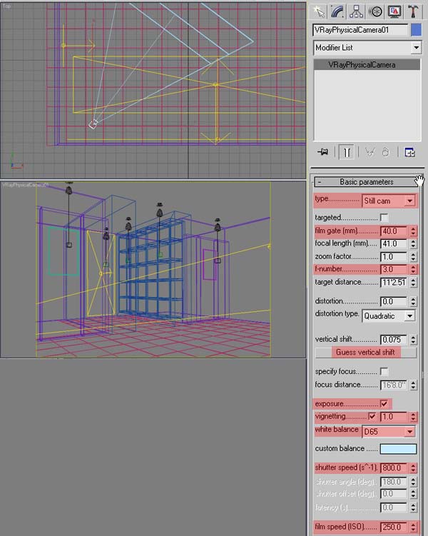 6、通過轉到"Create Tab > Camera > Vray > Physical Camera",將Vray物理攝像機添加到場景中。
