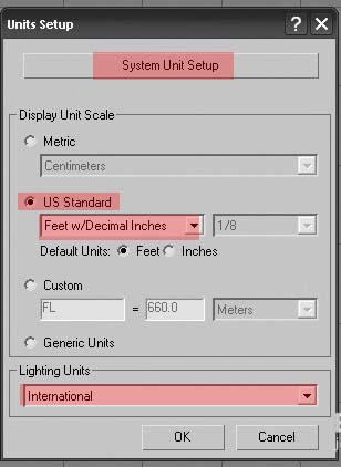 1、在本教程中,我們將使用真實的單位,所以首先要打開菜單"Customize > Units Setup > US",然后選擇"Standard > Feet w/Decimal Inches"作為單位。