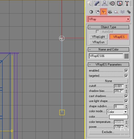 轉到"Lights"選項卡,從下拉列表中選擇“Vray”,并在右側視圖中創建一個“Vray”。然后在所有四個架下面。