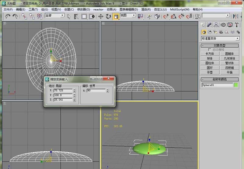 4、選擇一種模式然后在視圖區(qū)里沿Y軸壓縮。往下壓縮的話就可以給半球壓扁。