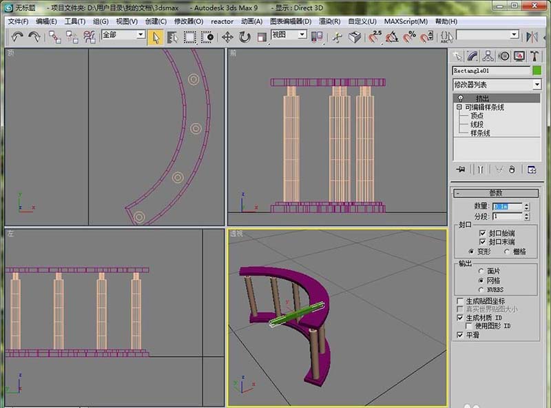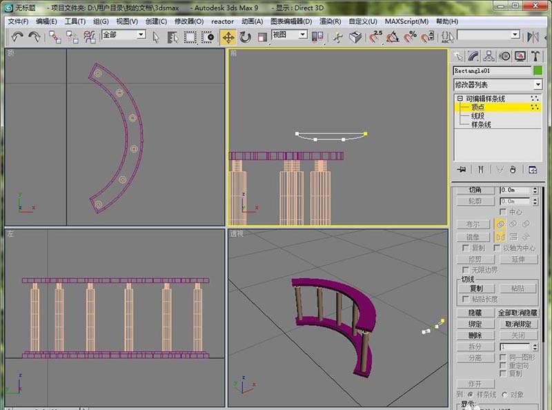 12、然后在前視圖里畫一個矩形,做好就是梁。