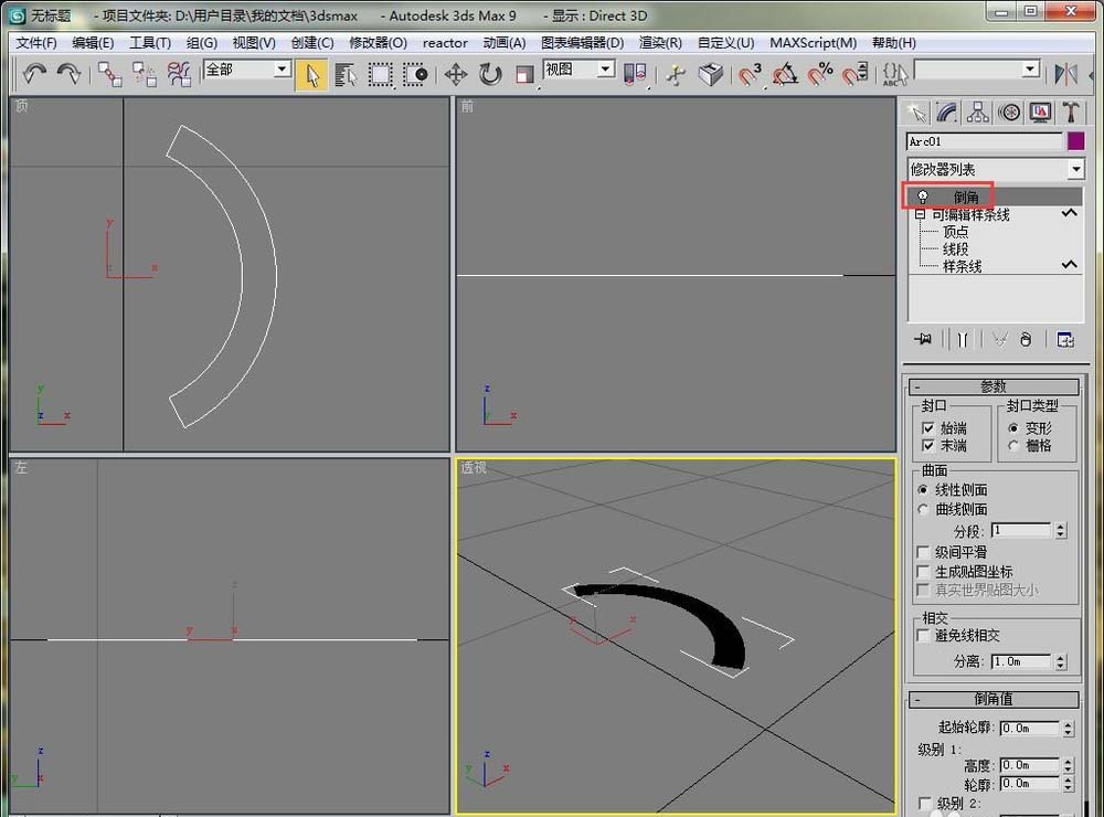 5、給這個弧形,添加一個倒角修改器