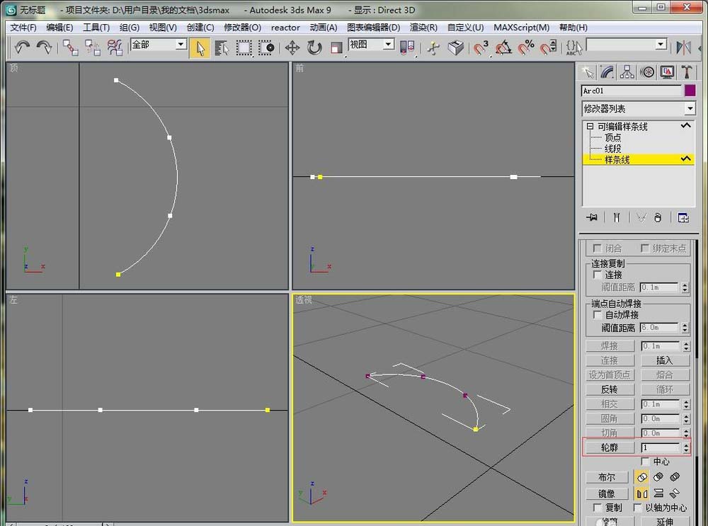 3、選擇可編輯樣條線下的樣條線,在輪廓里選擇移動的輪廓值