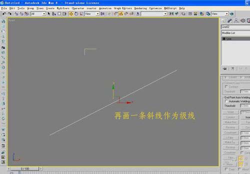 2、然后根據樓梯的設計需要,做一條傾斜的直線來作為樓梯的長度參照;