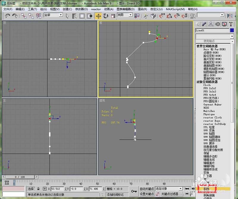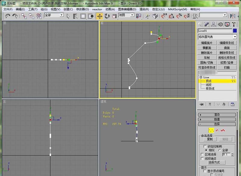 2、在修改器中通過對線的頂點進行微調,來達到最好的效果。
