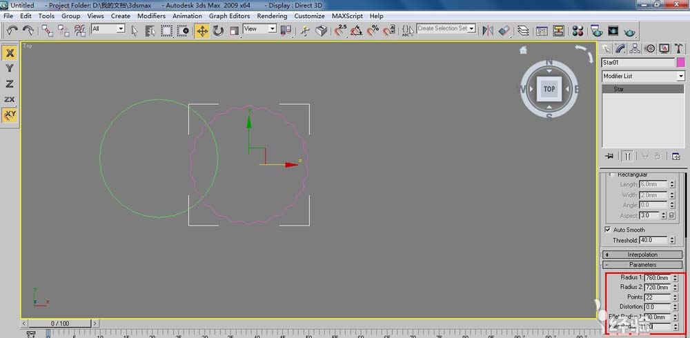 本實例通過制作圓桌布造型,來學習{多截面放樣}命令的使用,首先在頂視圖中創(chuàng)建{Circle}(圓)、{Star}(星形),作為兩個截面,在前視圖中創(chuàng)建一條直線作為"路徑“,使用{多截面放樣}命令生成圓桌布,調整{Bevel}(圓角)參數(shù),制作出桌布的邊緣。