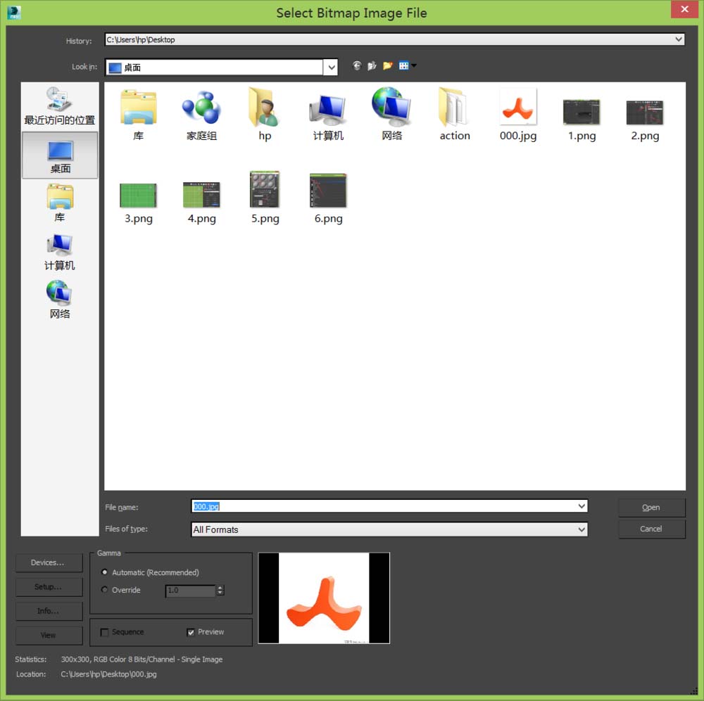 7、點(diǎn)擊bitmap選項(xiàng),彈出select bitmap image file對話框,如圖所示: