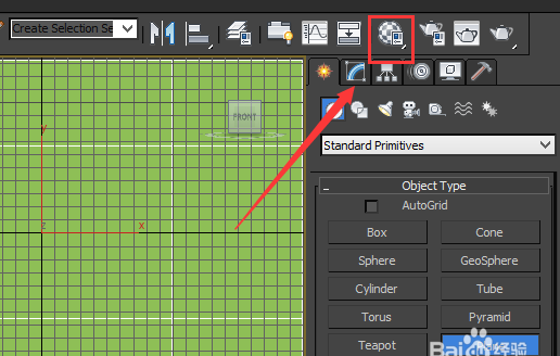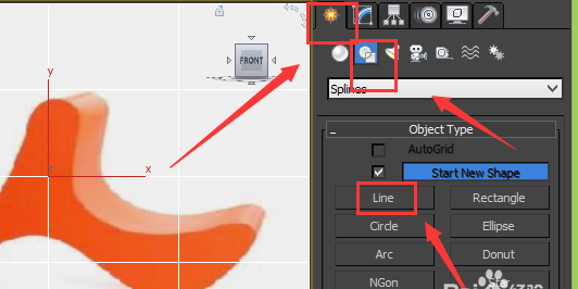3、點(diǎn)擊plane命令,在front視圖里繪制一個平面,如圖所示: