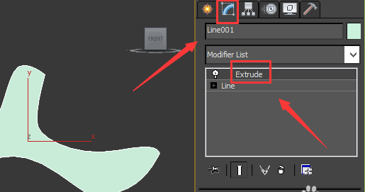 13、選擇曲線,在modify給曲線添加extrude修改器,如圖所示: