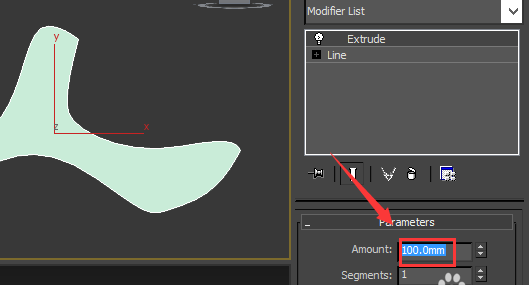 14、點(diǎn)擊extrude修改器,在其內(nèi)設(shè)置amount的值為100,如圖所示: