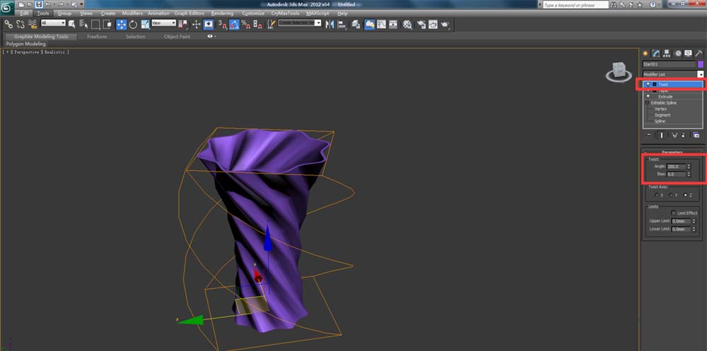 10、這樣很豐富了, 但是我們還需要在進行添加,同樣找到”twist“扭曲命令,并進行下面的設置,根據你們的情況進行設置。如圖。