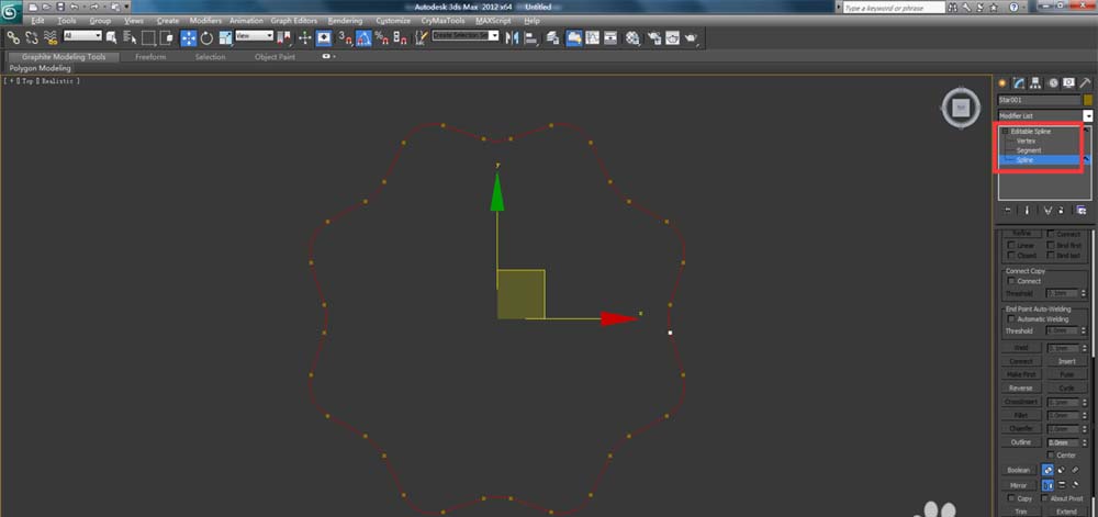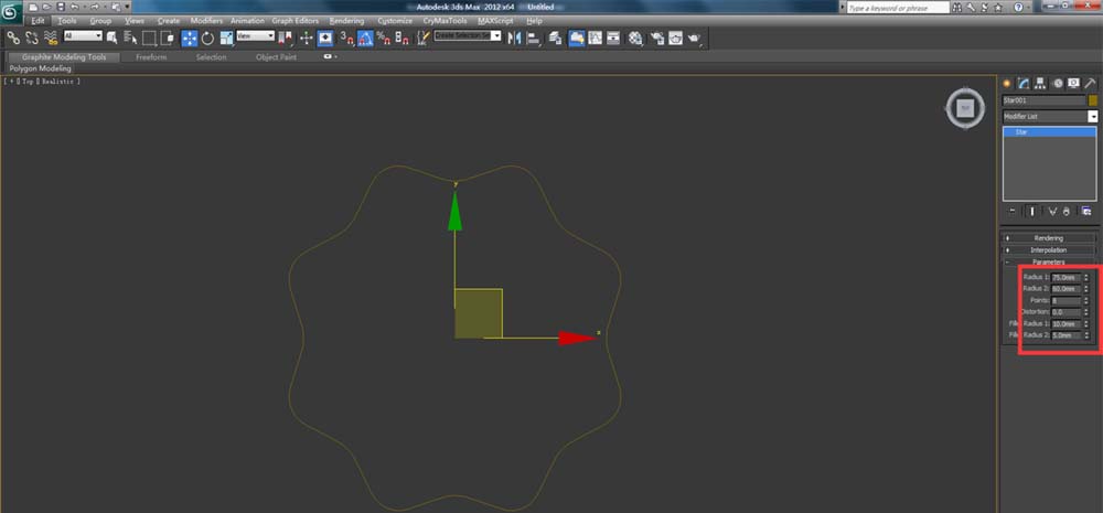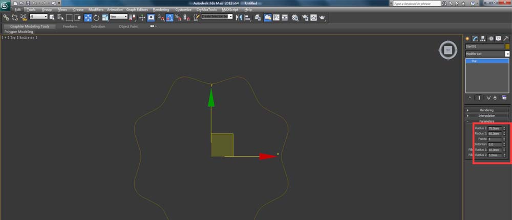 1、打開3DMAX軟件,在右側的創建的菜單欄中找到“star”星形的二維圖形,因為我們要通過二維圖形為其添加命令來完成我們想要的結果。點擊并在窗口中創建圖形。如圖。