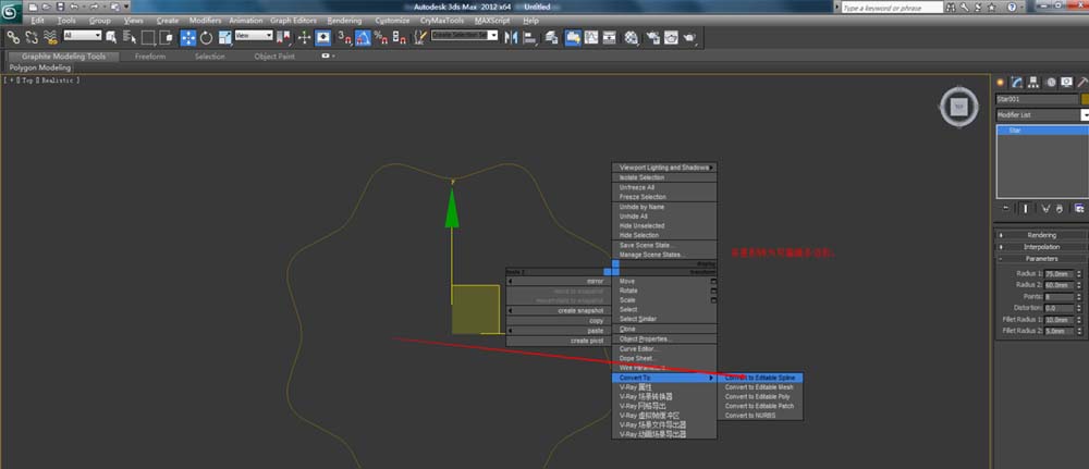 3、參數設置完成后,我們右擊圖形在出現的菜單中選擇“轉為可編輯樣條線”,這樣是為了我們可以對圖形的點段線進行編輯。如圖。