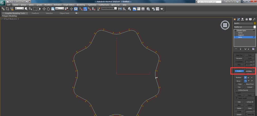 5、這時,我們在下拉的參數中找到“outline”輪廓,單擊,這時鼠標會出現一個小圖案,單擊我們創建好的線,并拖拽,這時就會看到又出來一條線,和原來的線離開一點距離即可。這時我們的輪廓線就做好了。如圖。