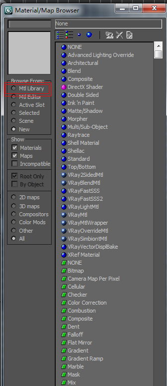 調用的話直接點擊獲得材質按鈕--選中mtl library--在左下角你會看見有個open選項,單擊它你就可以打開你要調入的材質球啦