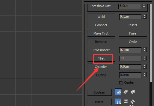 7、在其編輯區域里找到fillet選項,并調節其值為10,如圖所示: