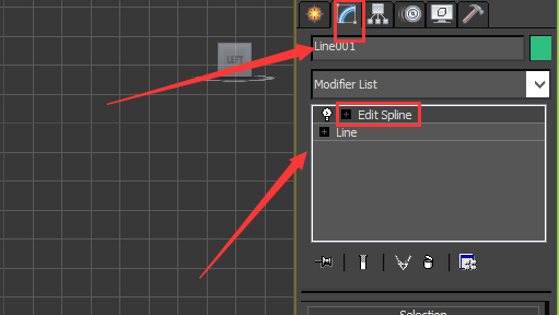 5、選擇剛剛繪制的曲線,找到修改命令,為該直線添加edit spline修改器,如圖所示: