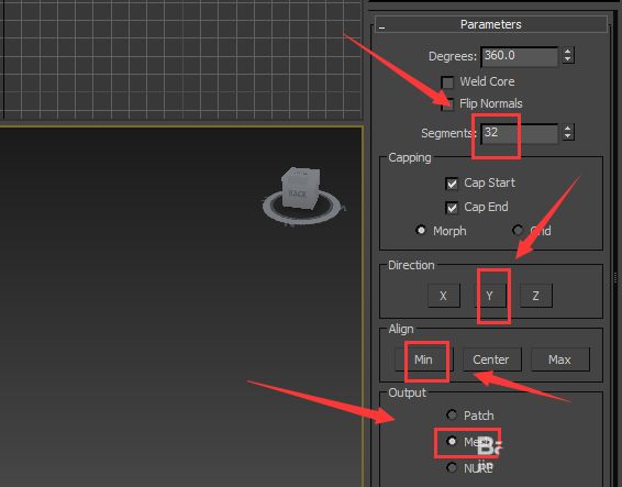 10、點擊lathe修改器,并在其修改面板里調節參數,參數設置如圖所示: