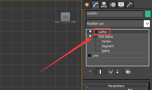 9、在修改面板里給剛剛修改的曲線,添加一個lathe修改器,如圖所示: