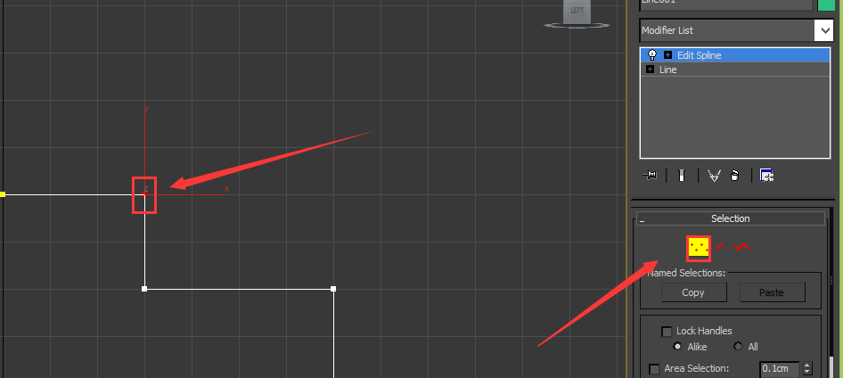 6、按下鍵盤上的數字1鍵進入點子層級,選擇曲線的一個點,如圖所示: