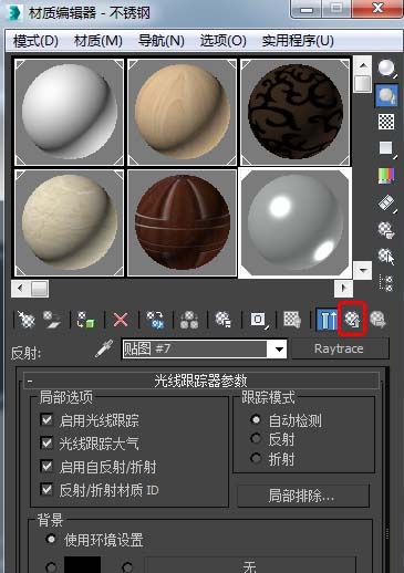 4、3DsMax2015中文版在“光線跟蹤器參數”窗口中我們不需要設置,單擊“轉到父對象”按鈕,返回上一級。
