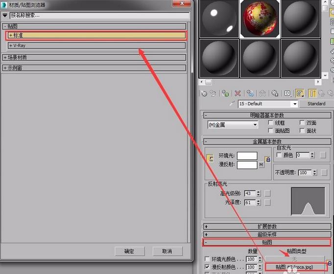 3、同樣,材質(zhì)下的貼圖選擇項(xiàng),也須要選擇貼圖下的標(biāo)準(zhǔn)貼圖,不能使用v-ray或其他插件貼圖