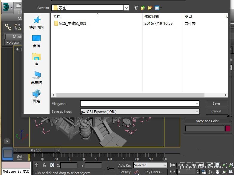 7、選擇“OBJ”格式,在“File name:”欄中,給導(dǎo)出的文件命下名。最后點(diǎn)擊“Save”命令。