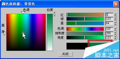 7、然后彈出顏色調板,我們更改成想要的,此處我們為便于說明更改為綠色。然后點擊關閉。