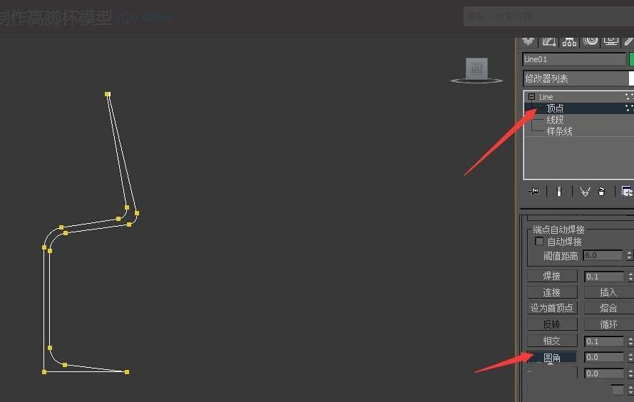 2、修改界面,頂點(diǎn)子項(xiàng),對點(diǎn)進(jìn)行倒圓角,移動點(diǎn),調(diào)整好。