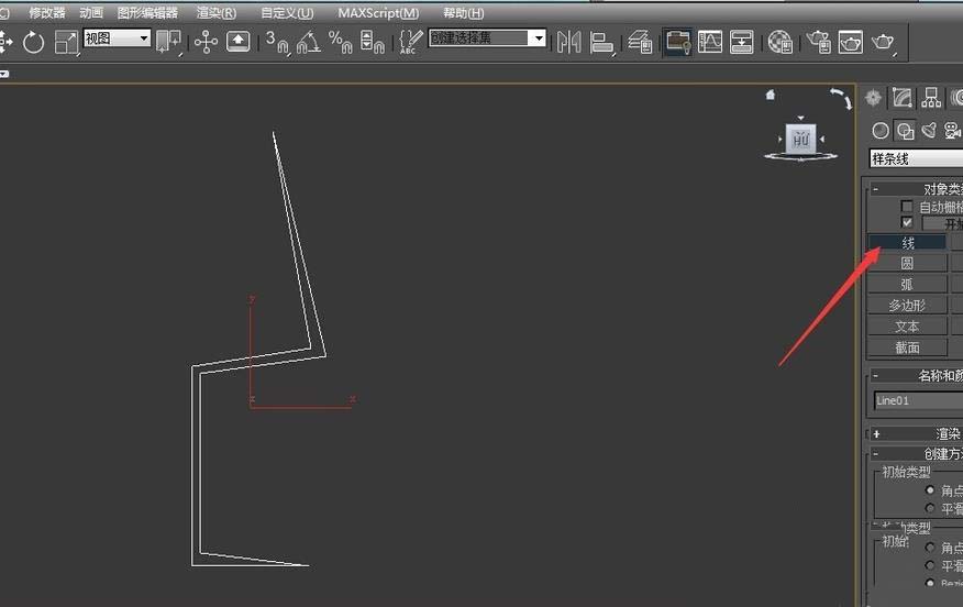 1、打開3d max,在前視圖內(nèi)用線畫出高腳杯的剖面。