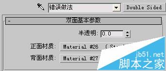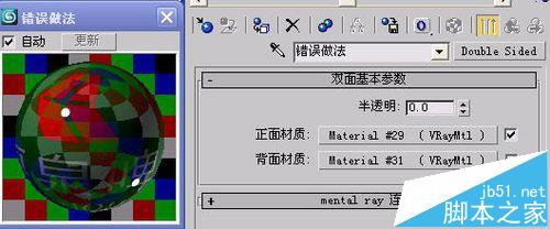 值為100時正反互換也不正確,至此我們已經得出結論了,在vray渲染環境中,max自帶的雙面材質“水土不服”,不太兼容。因此得出結論,必須改換vray渲染器自帶的“vray2sidedmtl”,其它調法都一樣,只是換一下材質類型而已。我們迅速將材質類型改為vr的雙面材質,過程我就不多說了。