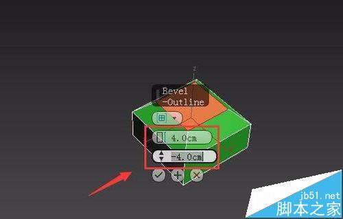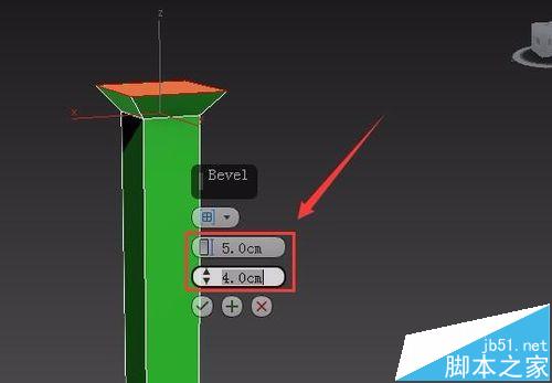 11、再次選擇bevel后的按鈕,設置高度為5,輪廓為4,點擊對號確定,如圖所示: