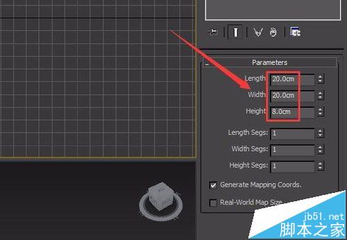 5、選擇這個box物體,在modify里設置其參數(shù)如圖所示:
