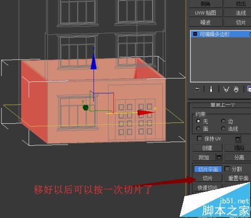 3、調(diào)整好位置后,點(diǎn)擊切片平面下方的“切片”按鈕即切片成功,可點(diǎn)擊多邊形,選擇物體發(fā)現(xiàn)切片成功。這個(gè)方法可以讓同一個(gè)物體有不同的貼圖