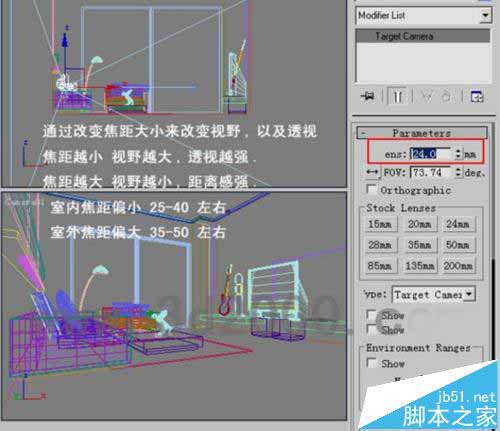 5、如果遇到在編輯相機調節相機的 Parameters---FOV 時室內的家具會變形的情況當你又想把室內視野變大,而且家具又不會變形的 ?