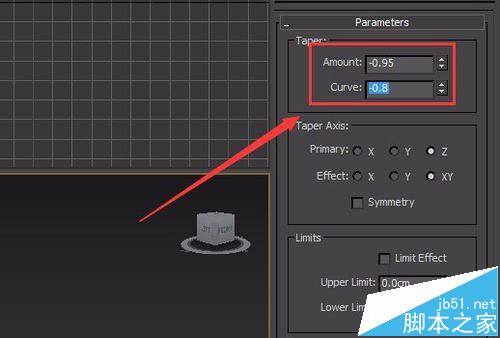 9、在modify里修改taper修改器的參數(shù),如圖所示: