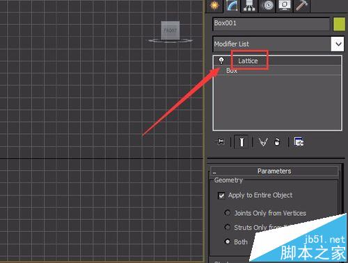 5、選擇后改后的這個box物體,在modify里給其添加一個lattice修改器,如圖所示: