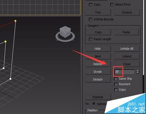 7、重復第6步的操作,在選擇選擇墻體的另一條邊,設置其數值為10,然后一次選擇窗戶的兩個長邊,設置divide的值為8,如圖所示: