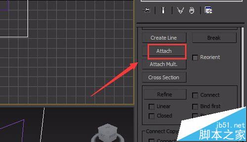 4、選擇那個大的矩形,單擊鼠標右鍵,在彈出的菜單里選擇convert to editable spline選項,,在modify里找到attach命令,如圖所示: