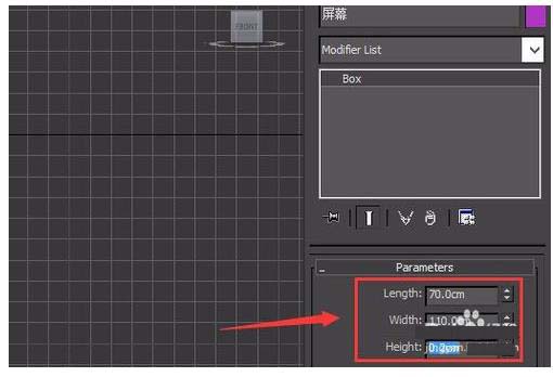 6、選擇殼再次按下鍵盤的shift鍵再復制一個物體,作為液晶顯示器的屏幕,并在modify里修改參數如圖所示: