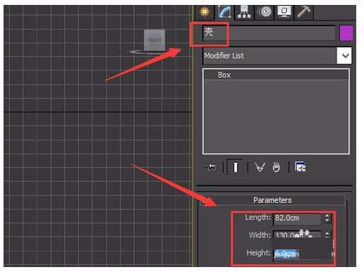 4、選擇創建的box物體,在modify里修改名字為殼,并修改其參數,參數設置如圖所示: