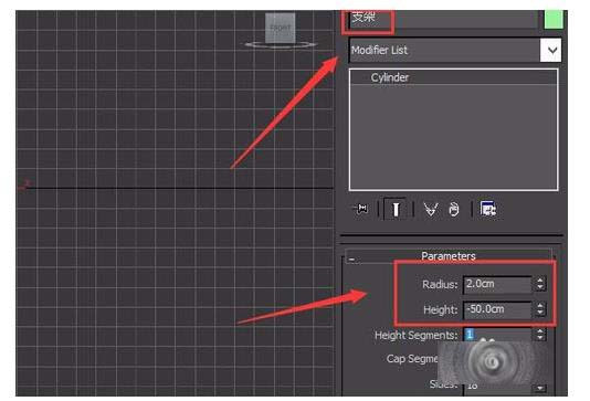 7、選擇創(chuàng)建的這個cylinder物體,在modify里修改名字為支架,并修改其參數(shù)如圖所示: