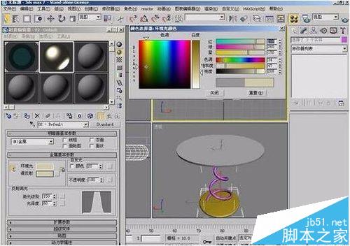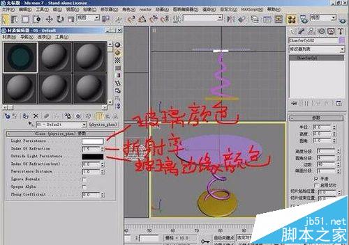 7、再選一個材質球。各項參數大致如圖。選擇其它部件,把材質賦予它們,如圖