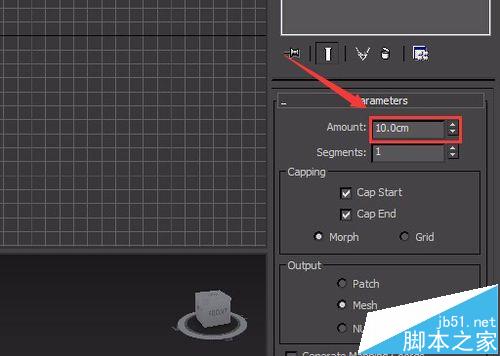 8、在extrude的參數修改里調節amount的值為10,如圖所示: