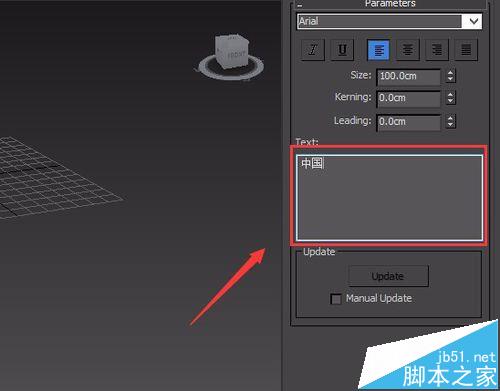 7、點擊modify命令后,在透視圖里我們的文字就顯示出來了,如圖所示: