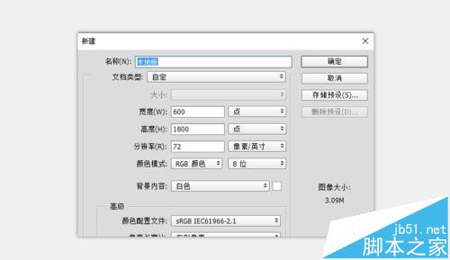 1、運行Photoshop軟件,按“Ctrl+N”新建文件,設置尺寸為1800mm*600;