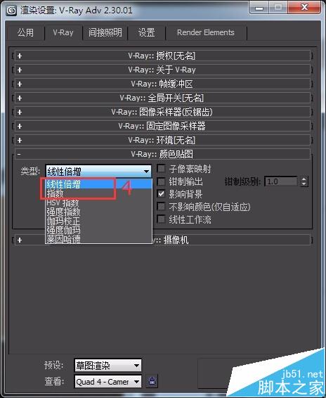 3、下面,顏色貼圖——類型——指數或者線性倍增